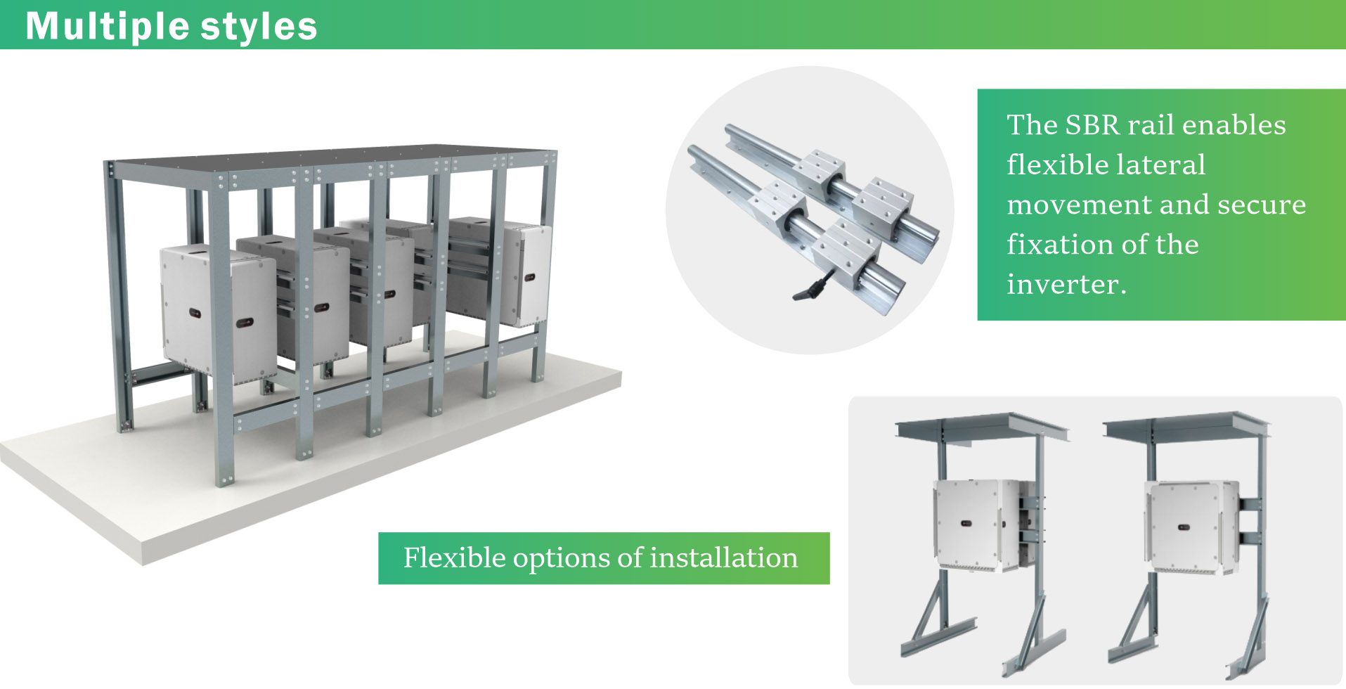 - Le dimensioni possono essere personalizzate in base al modello e alla quantità di inverter, garantendo facilità di installazione e applicabilità.