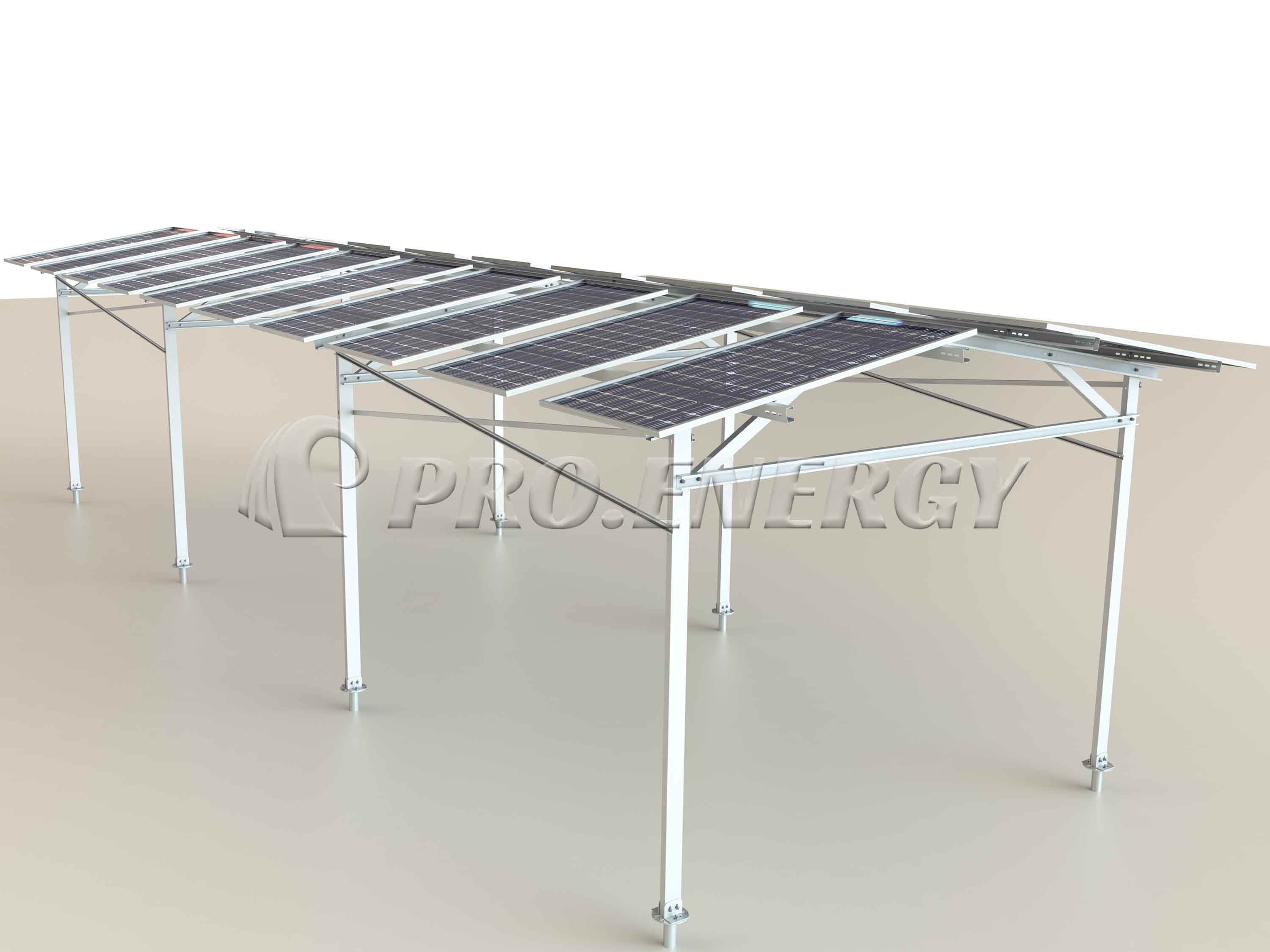 A: Struttura di supporto per impianti solari agricoli, sia a telaio che a colonna singola. Sono disponibili strutture di tutte le forme.