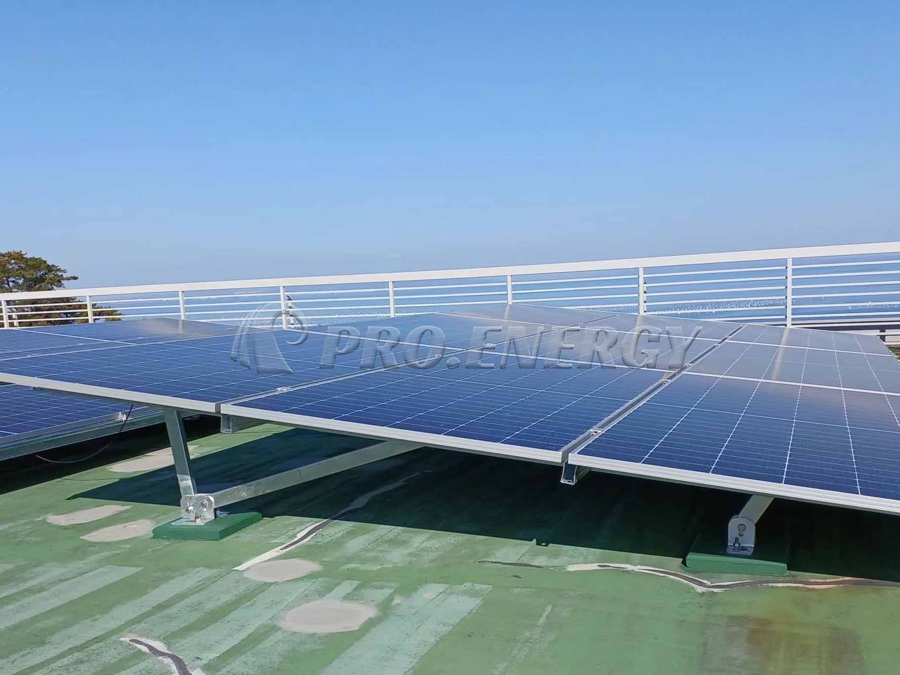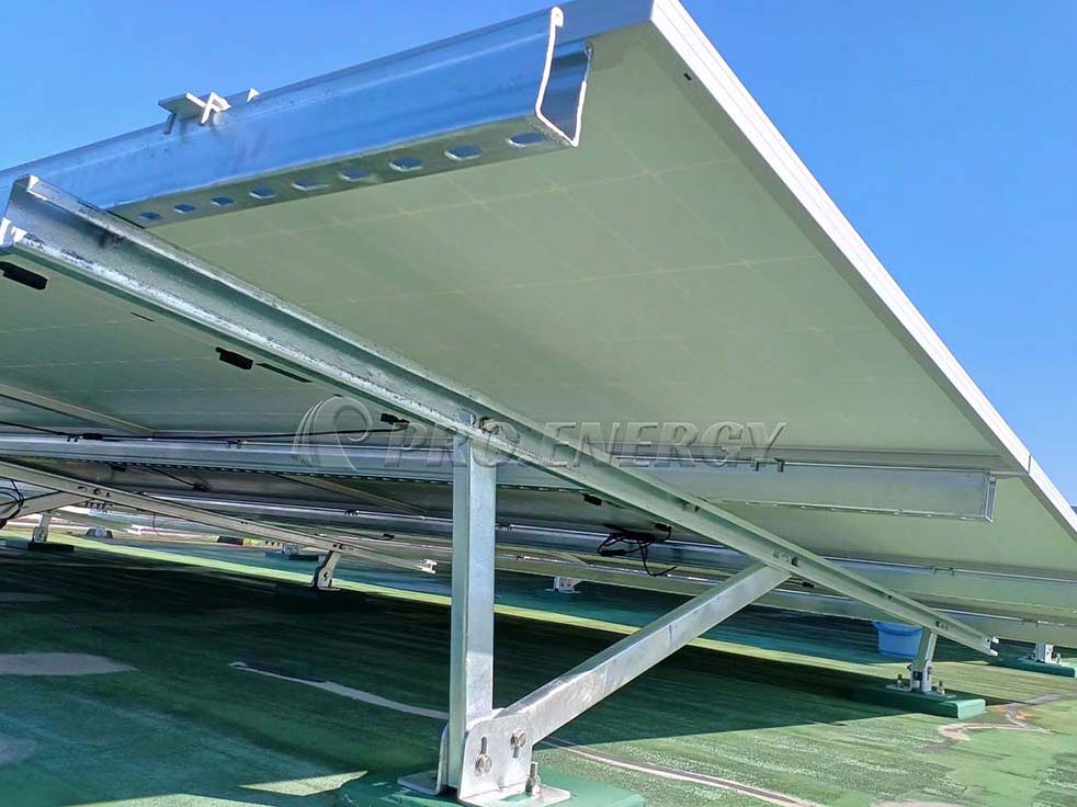 Sistema di staffe di montaggio impermeabili per tettoie solari.